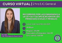Este curso se centrará en el análisis de las enmiendas más relevantes introducidas a la Ley para la Prevención e Intervención con la Violencia Doméstica (Ley Núm. 54 de 1989, según enmendada) entre los años 2020 y 2025. El objetivo es comprender la evolución normativa de la ley y evaluar su impacto en los procedimientos judiciales en Puerto Rico, tanto en el ámbito procesal como sustantivo. Los participantes explorarán en detalle las modificaciones legislativas que han influido en la aplicación práctica de la ley en los procesos penales y civiles relacionados con la violencia doméstica.