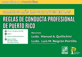 Este curso ofrece un análisis general de los cambios más significativos incorporados en las nuevas Reglas de Conducta Profesional de Puerto Rico, aprobadas en 2025. Con la participación especial de dos integrantes del Comité de Revisión, se explorarán las motivaciones detrás de las enmiendas, su impacto en la práctica legal y las implicaciones éticas para para profesionales del Derecho en Puerto Rico.